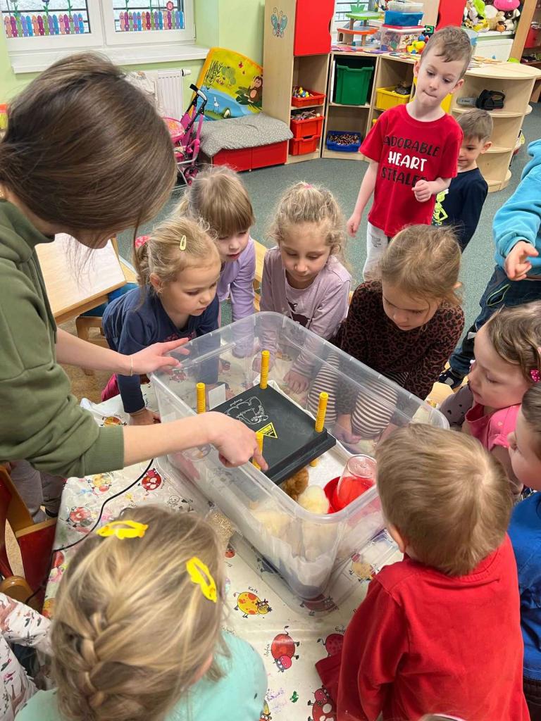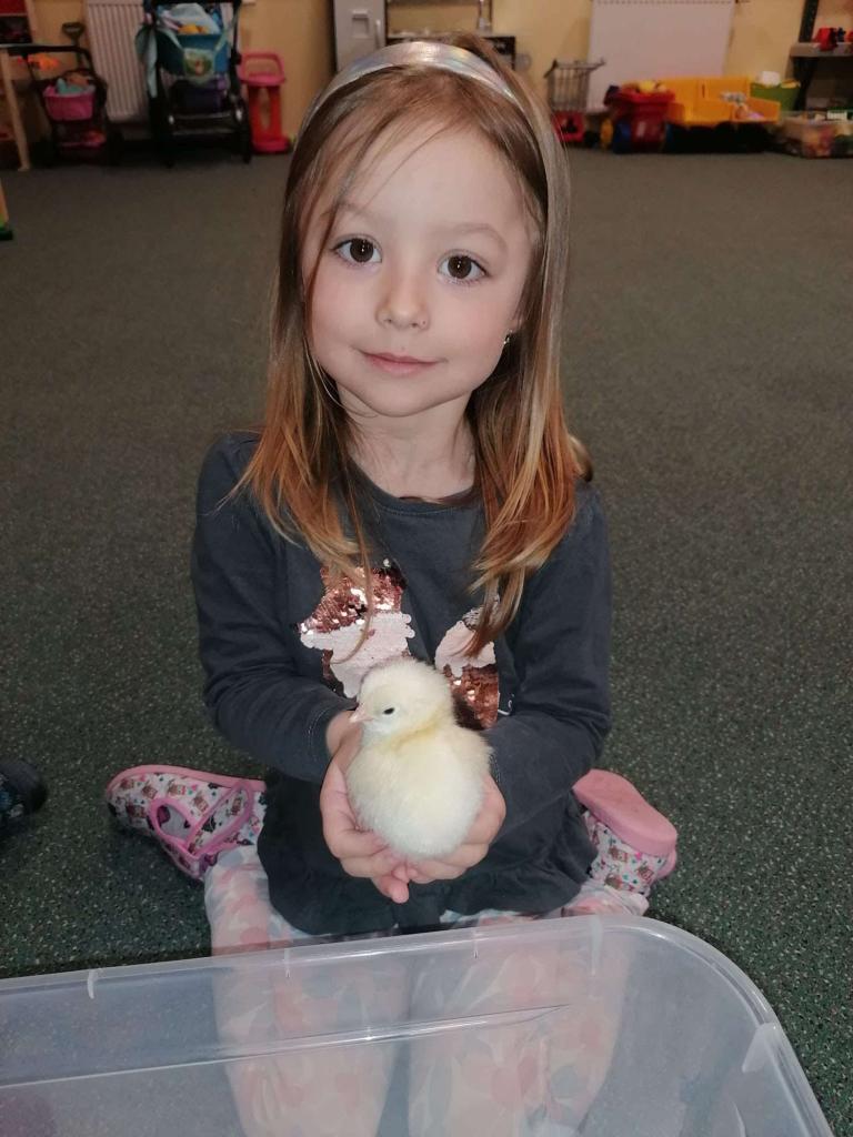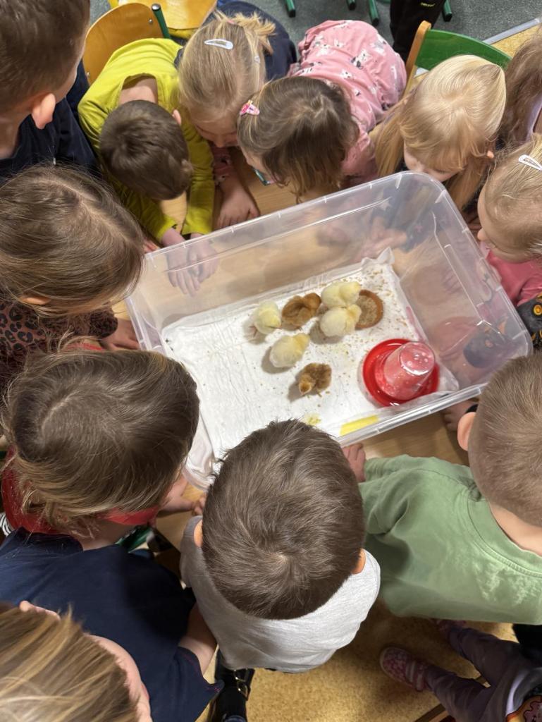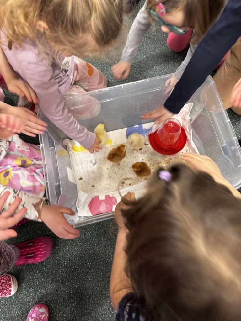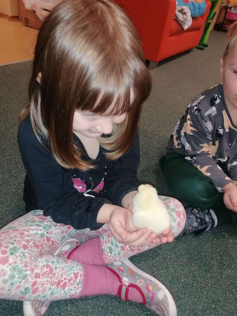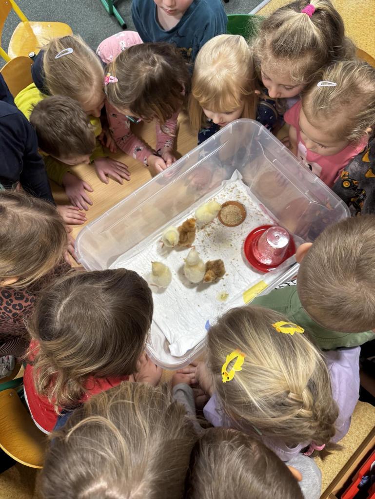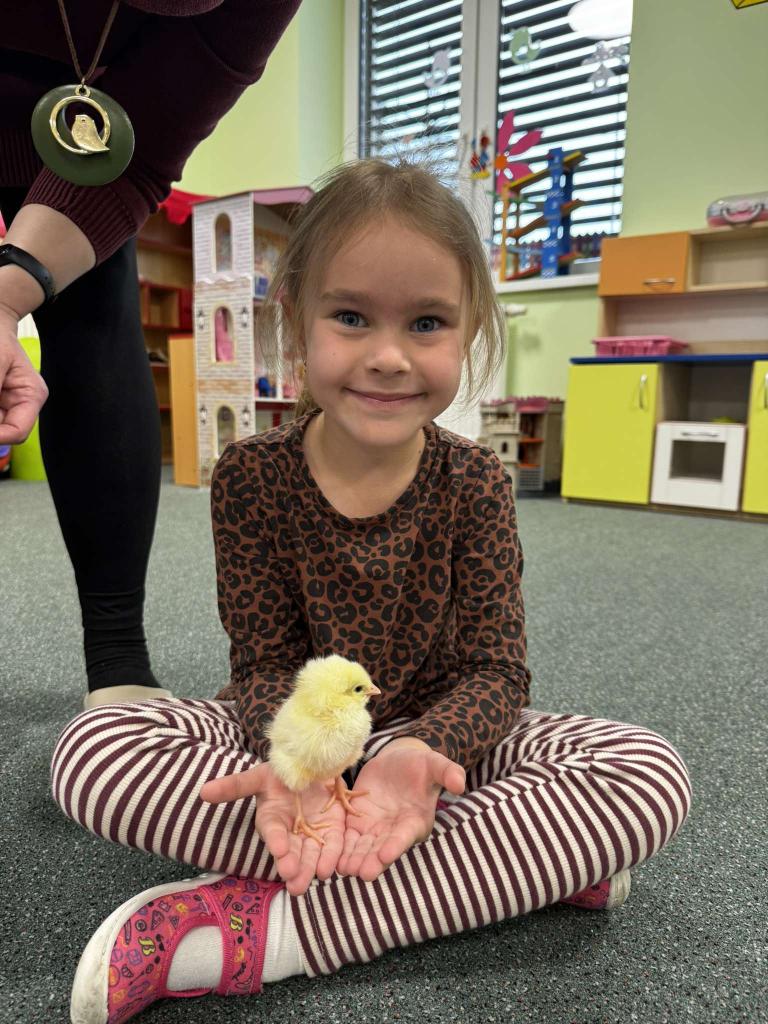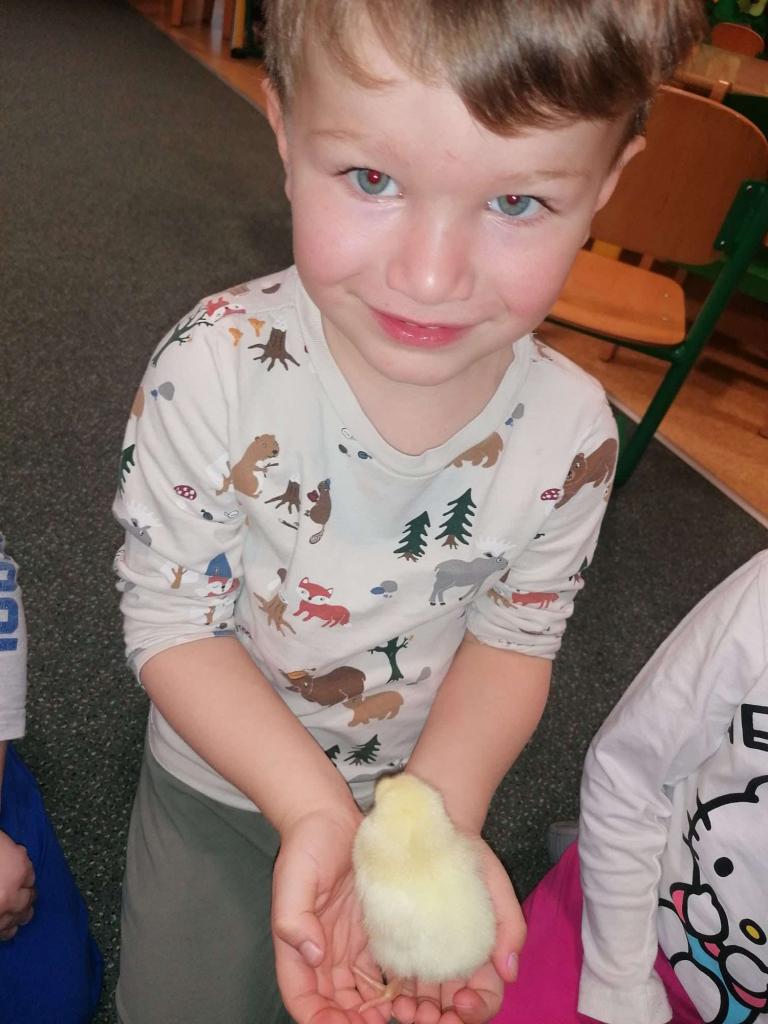 V tomto týdnu jsme měli jedinečnou možnost sledovat líhnutí kuřátek přímo ve třídě. Děti se skrze připravené materiály seznámily s procesem líhnutí a dozvěděly se více o tom, jak funguje líheň. Nechyběl ani osobní kontakt – kuřátka si mohly pochovat a pohladit. Zároveň si děti uvědomily, jaká péče a práce je potřeba k jejich chovu.