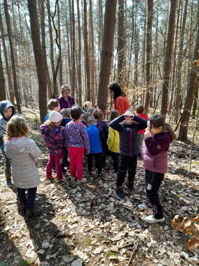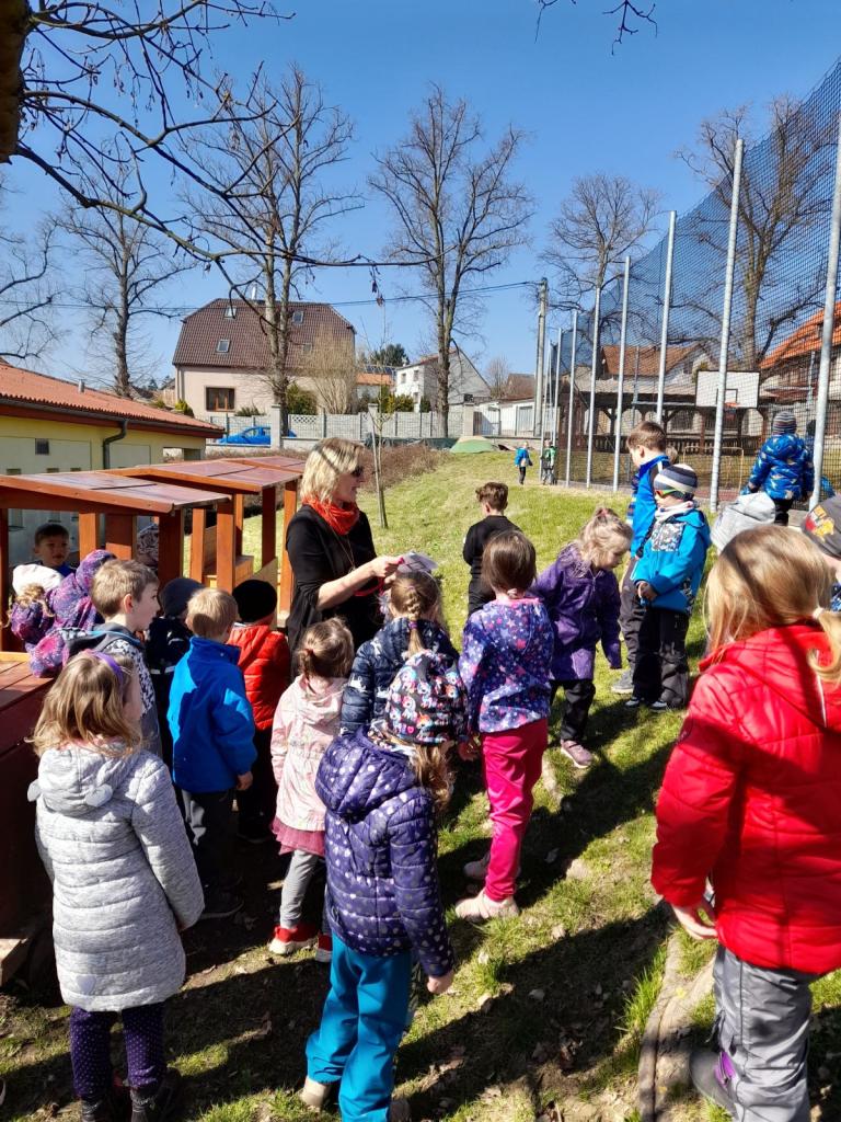 Dnes děti v lese a na školní zahradě vítaly/přivolaly jaro .